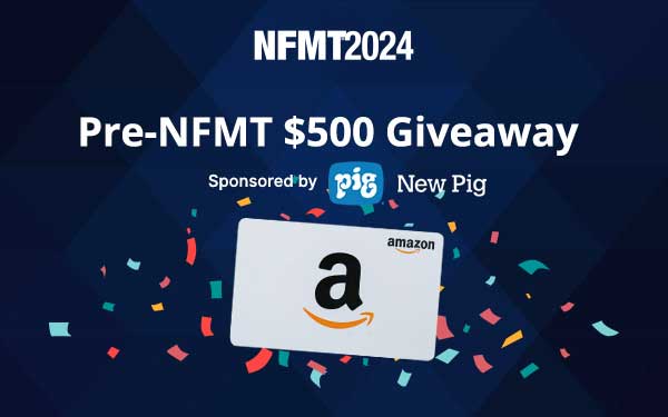 The winner will be selected and notified by New Pig on March 6th. The winner can pick up the gift card at the New Pig booth on March 12, 13 or 14 at NFMT.